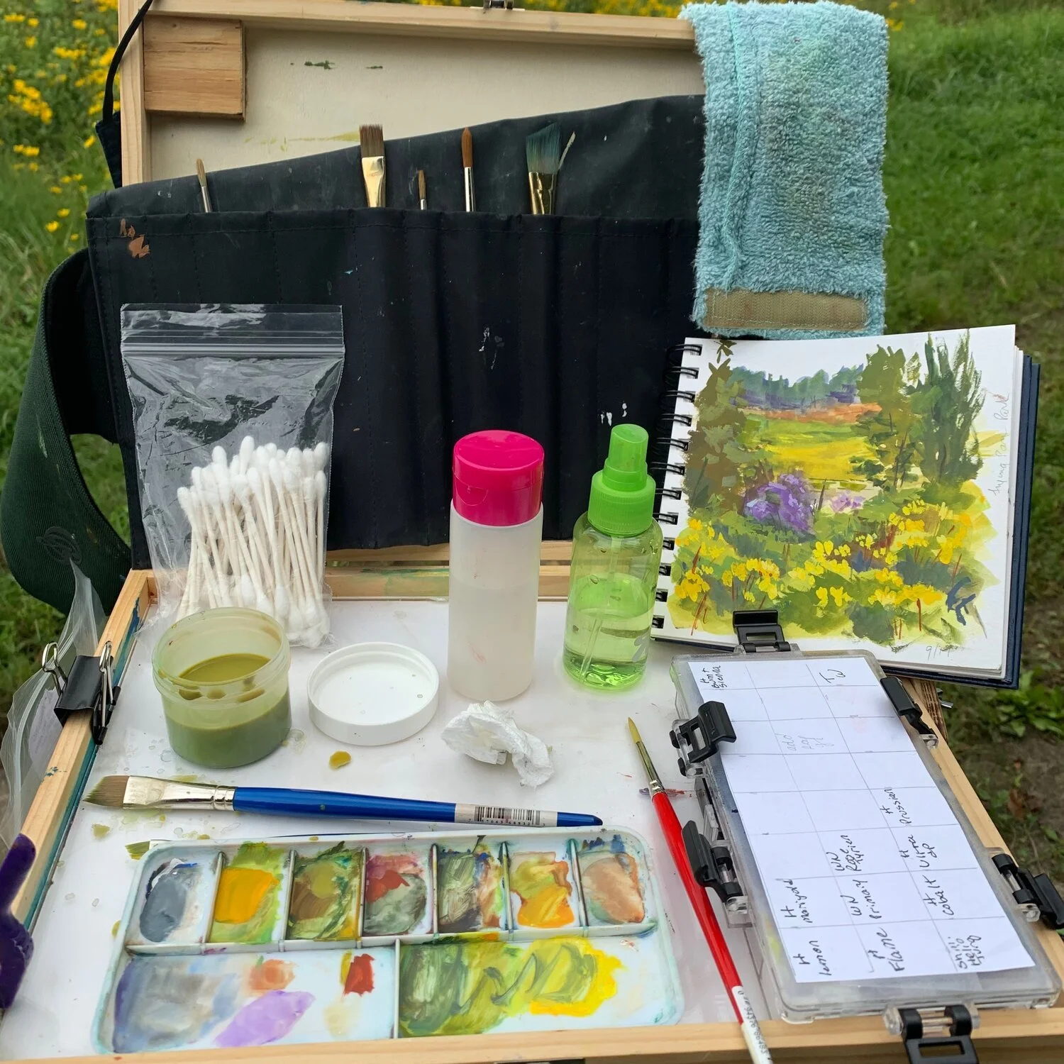 This is a beginner-friendly watercolor Plein-Air tutorial. It walks students through the process of transforming a sketch to a finalized landscape painting. This would be a 2-week main project in a 4 week unit.